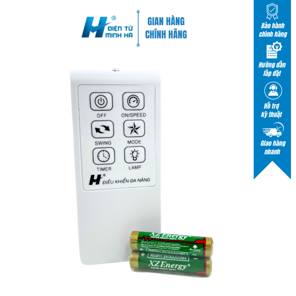 - Với thiết kế tối giản, sang trọng và giao diện nút bấm trực quan, chiếc điều khiển này hỗ trợ các chức năng: bật/tắt, chỉnh tốc độ, chế độ gió, hẹn giờ, đèn chiếu sáng và xoay hướng.