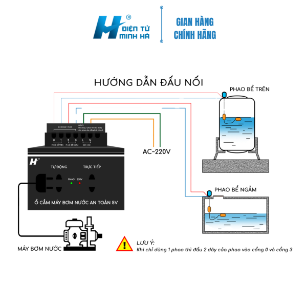 - Chế độ tự động: Điều khiển bằng phao điện 5V.